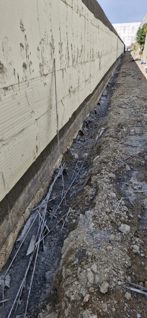 Betonarme yapının kenarına uygulanan su yalıtımı işlemi